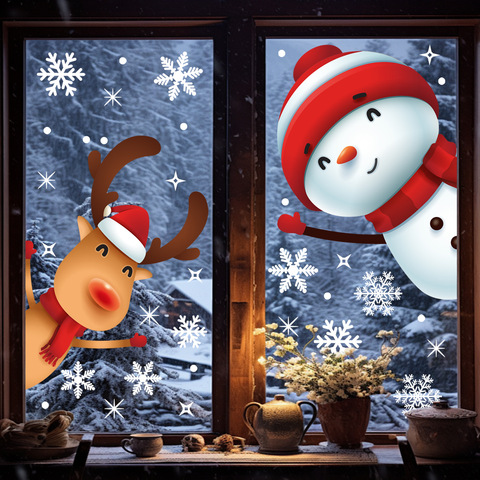 ملصقات عالية الجودة من كلوريد البولي فينيل سانتا كلوز ثلج أيل عيد الميلاد ملصقات ثابتة للديكور المنزلي لتزيين غرفة الأطفال في عيد الميلاد