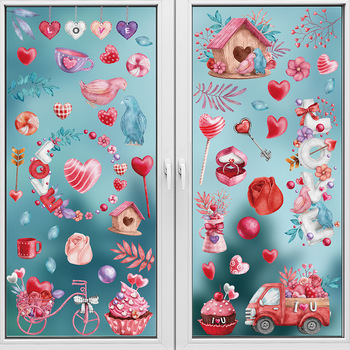Çok satan tatil gül kalp şekilli pencere çıkartmaları Diy banyo çıkartmaları statik karikatür pencere çıkartmaları