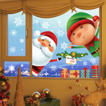 Yüksek kalite noel atmosfer çıkartmalar karikatür karakter noel pencere çıkartmaları ev dekorasyon için tema çıkartmalar