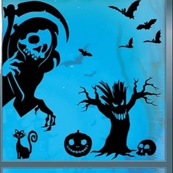 Cadılar bayramı elektrostatik pencere çıkartmaları korkunç siyah iskelet küçük yarasalar örümcekler mezar taşı hayalet çıkartmaları ile parti dekorasyon için