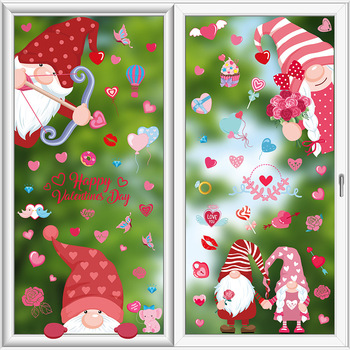 Statik pencere çıkartmaları sevgililer günü cüceler cam dekorasyon buzdolabı aşk şeker pembe karikatür pencere çıkartmaları